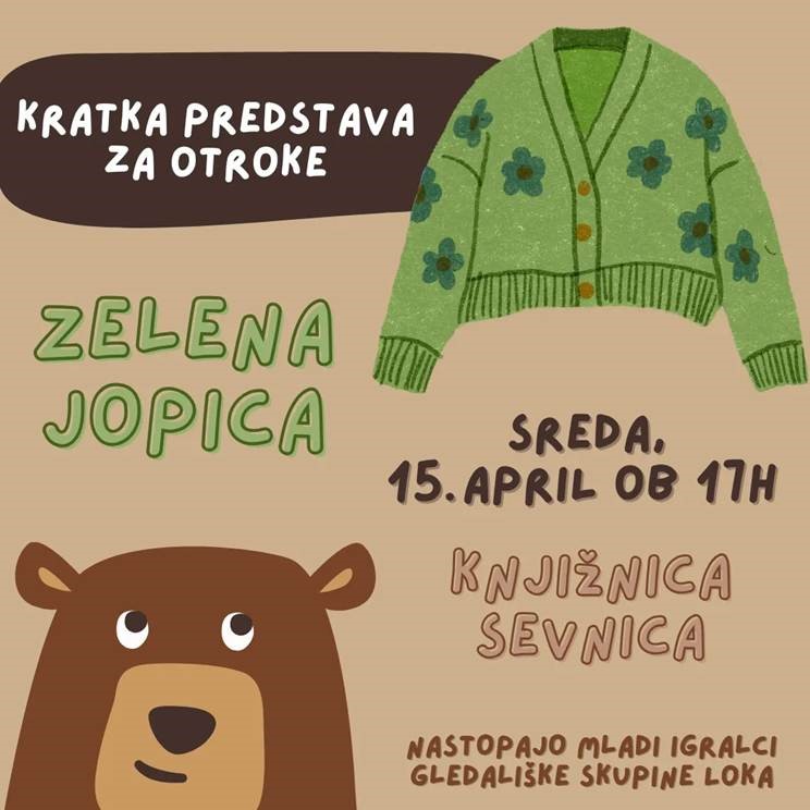 Vabimo vas na kratko predstavo za otroke Zelena jopica v izvedbi mladih igralcev Gledališke skupine Loka.