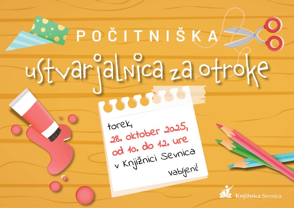Vabimo vas na počitniško ustvarjalnico za otroke, ki bo potekala v času krompirjevih počitnic v Knjižnici Sevnica, med 10. in 12. uro.